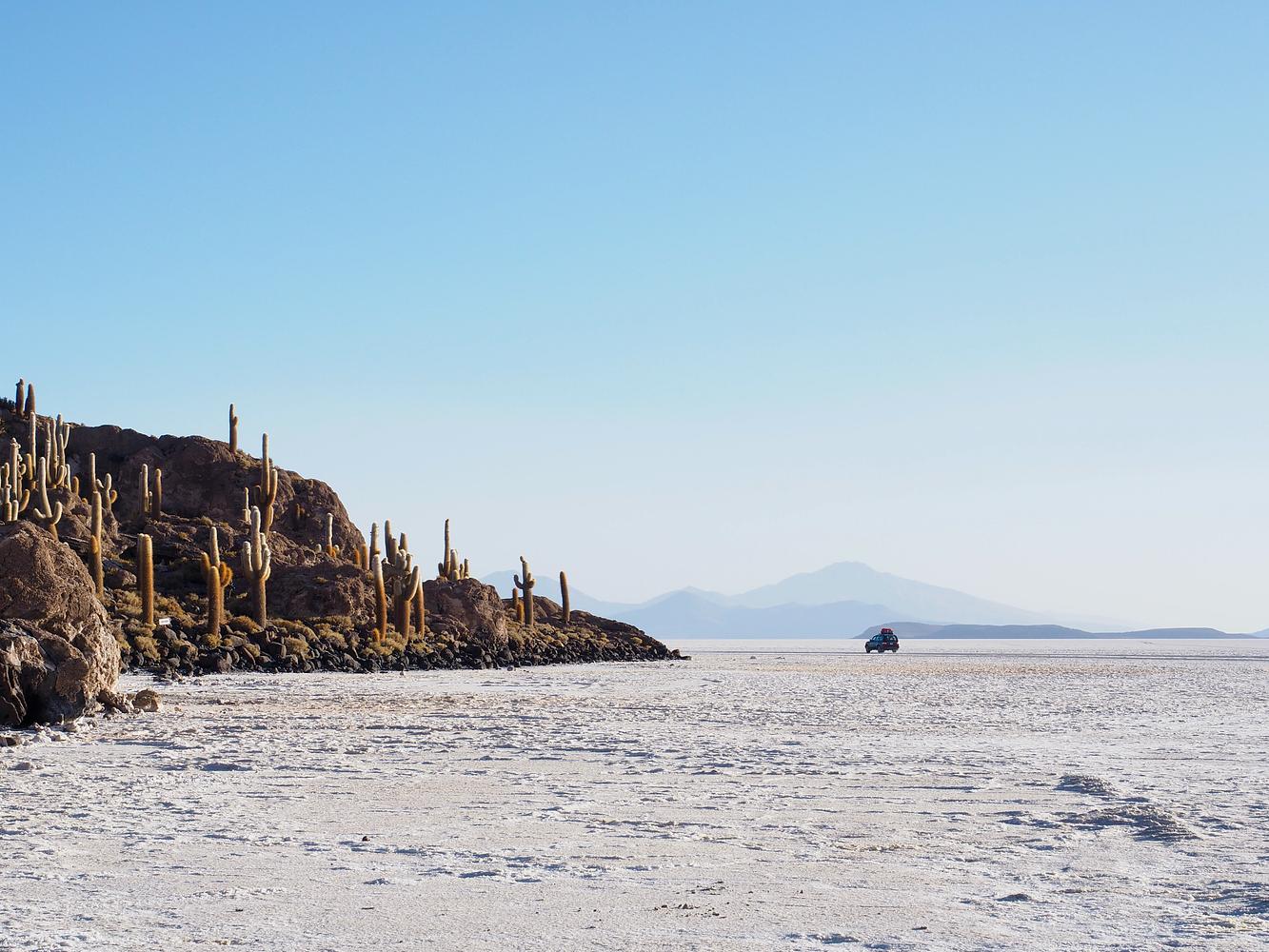 Incahuasi Island, Salar de Uyuni, Bolivia. A giant cactus island on an ancient volcano which was underwater at one point in history. Enormous cactus growing next to coral arches in the middle of the world's largest salt flat. I was imagining the crazy mega prehistoric animals roaming the area at different times throughout history as I walked around.